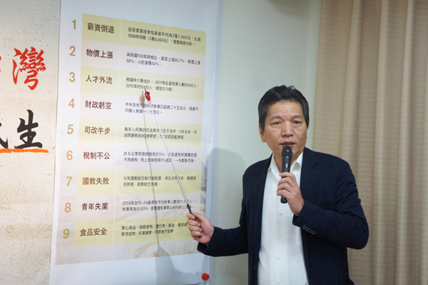 「許多財團賦稅低於5%,甚至有賺百億元卻不用繳稅的情形,但一般上班族的稅率5%起跳,一毛都跑不掉。」李鴻鈞說,國教的改革缺乏執行與配套,學生素質與競爭力更不如20年前;2014年15至24歲的青年平均失業人數高達11.2萬人,失業率為12.63%,是整體失業率的3倍以上,且黑心食安問題從塑化劑到假油,也持續爆發。