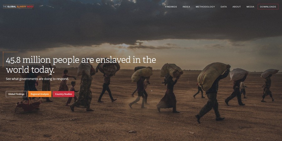 「現代奴隸」人口比例最高的國家首三位分別為北韓、烏茲別克與柬埔寨,其中,北韓在規模龐大的勞改營有強迫勞動情況,北韓女性亦有被逼婚及在中國及鄰近地區遭受商業性質的性剝削。至於烏茲別克,政府每年在棉花採摘季節會強迫人民勞動。香港在167國家中,如按人口比例計算排名第32,但如果以實質「現代奴隸」數目計算,則排行第93。