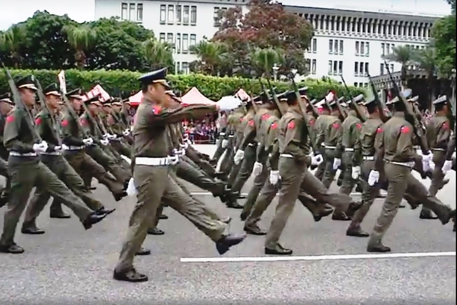 國民黨主席洪秀柱說:「這些年來我們看到軍隊的訓練,大家都提出很多質疑,這些身為五年級的朋友們也有點看不下去。那我們老大哥就做給你們小老弟看,這個正步應該怎麼踢,軍人應該有什麼樣的架勢典範,這很有意義。」