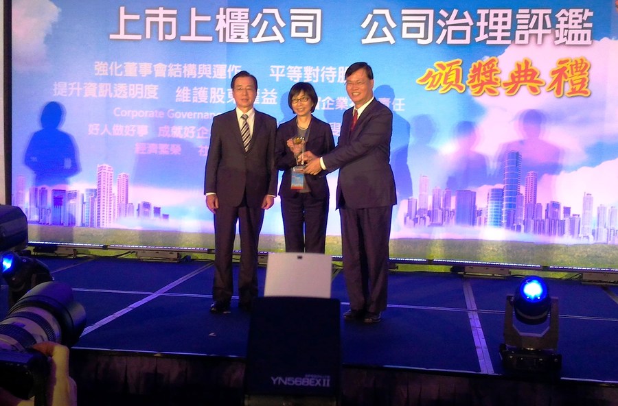 台灣證券交易所及櫃檯買賣中心16日舉行公司治理評鑑頒獎典禮,表揚第二屆公司治理評鑑排名前5%的上市公司41家及上櫃公司31家。這次首度進榜的公司有南亞、福懋、中鋼、上銀、光寶科、鴻海、英業達、長榮航、華南金、新光金、中信金、晶技、和碩等13家公司。