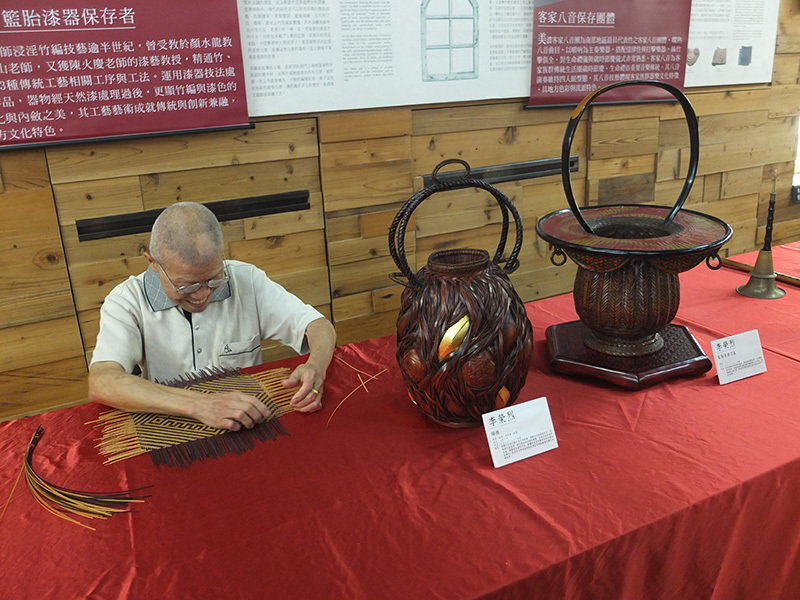 記者會現場,不只展示竹工、竹藤編藝師李榮烈、張憲平的作品,他們也實際地操作編織技巧給現場的民眾觀摩,純熟的技法無不讓民眾十分讚嘆。