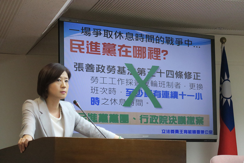 「勞基法34條修正案:勞工工作採晝夜輪班制者,更換班次時,至少應有連續11小時之休息時間。」王育敏27日在衛環委員會上質詢時認為,前院長張善政體恤勞工所送的修正案,行政院現在卻決議撤回此案,她要求勞動部長郭芳煜現場答覆,是否會將勞基法34條的修正案再次送入立法院。