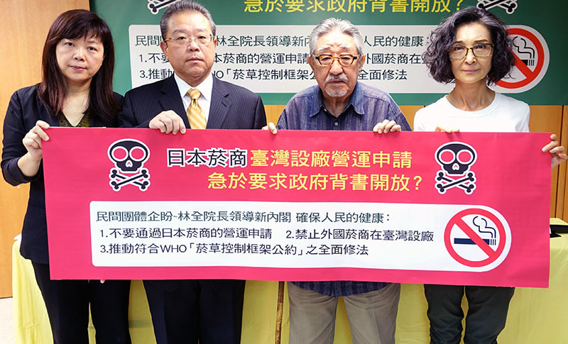 「我們對新政府提出3大訴求:確實做到不通過日本菸商的營運申請、禁止外國菸商在台設廠和推動符合『菸草控制框架公約』規範的全面修法。」董氏基金會終身義工孫越表示,菸商設廠並不會真正創造經濟效益,「菸商賺大錢匯回日本,留下日後的疾病是由台灣人民買單!」