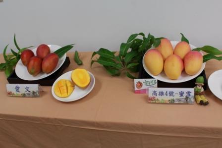 農委會於13日召開記者會,宣布芒果新品種「高雄四號蜜雪」正式亮相。高雄農業改良場場長暨品種發表人林景和表示,蜜雪芒果的甜度可達13~17度Brix(甜度單位),比一般芒果的平均值12~14度更高;且櫥架壽命更高達6~8天,較「愛文」長,能夠在賣場擺放得更久,更具內外銷潛力。