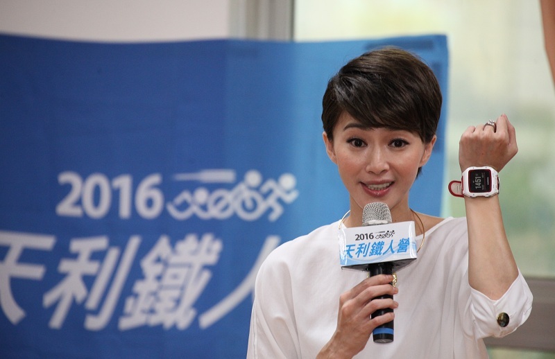 侯怡君秀出「三鐵錶」,勉勵素人們要勤練體力。(photo by盧明正/台灣醒報)