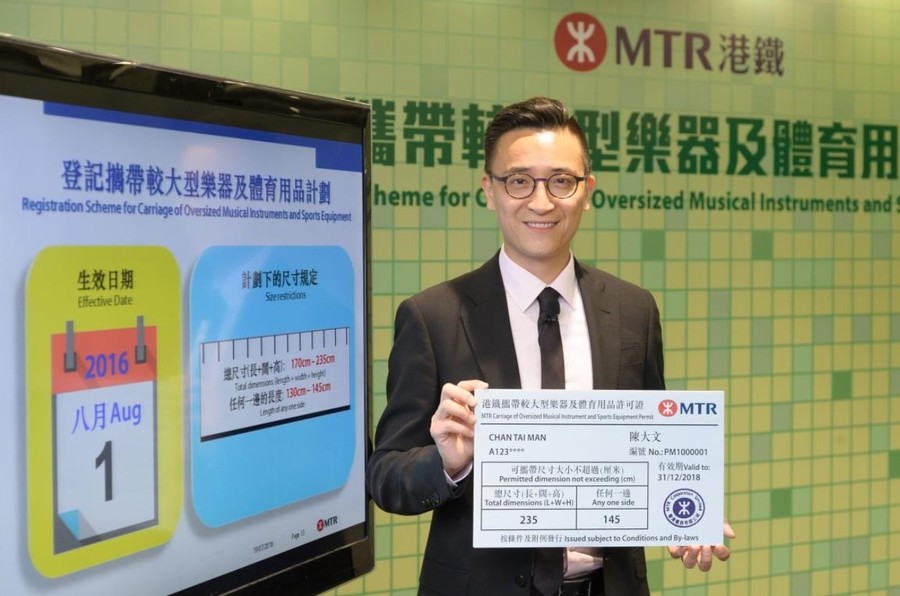 【台灣醒報特約記者陳玨明香港報導】乘坐香港鐵路的人士要注意!港鐵19日宣布,將把現時「登記攜帶較大型樂器計畫」擴展至大型體育用品,持證人士可帶同一件尺寸總和不超過235公分、單邊長度不超過145公分的樂器或體育用品乘搭港鐵,目前持有樂器許可證的市民仍不用另行申請。