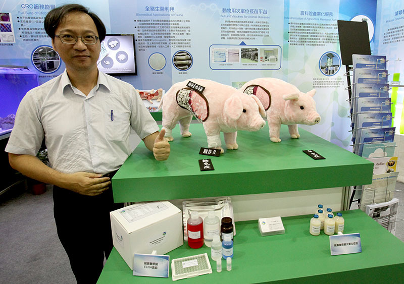 【台灣醒報記者盧明正台北報導】「當豬仔流眼屎、兩耳下垂及產生關節炎症狀時,這就表示感染豬鼻黴漿菌了。」農業科技研究院21日在南港展覽館台灣生物科技大展中展示「動物用次單位疫苗平台」,能夠有效防止豬仔生病。目前已技轉給民間公司,可望近期上市。