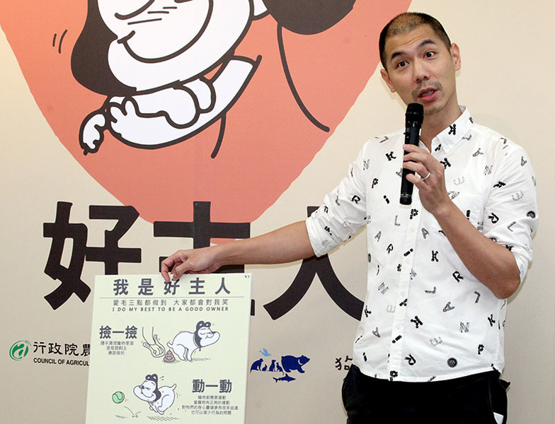 插畫家James為農委會繪製「我是好主人」宣傳海報,教導國人如何真愛毛小孩。(photo by 盧明正/台灣醒報)