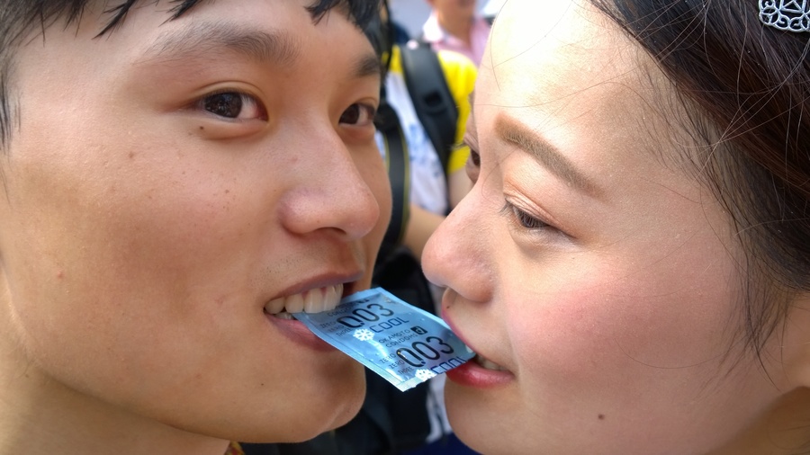 紅絲帶基金會號召十餘名大學生,在現場與民眾玩遊戲及有獎徵答活動,凡餐與者及答對問題者,皆可以得到一個保險套。陳姓大學生表示,主辦單位舉辦這個活動很有意義,他也會努力地實踐安全性行為。