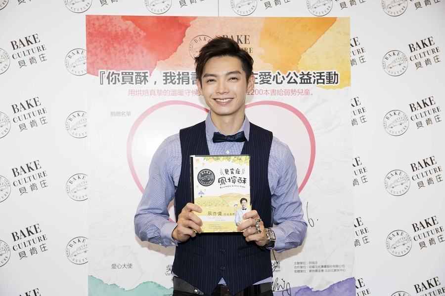 【台灣醒報記者楊穎軒台北報導】「凡是購買一本鳳梨酥,我們就會捐贈一本書給弱勢兒童。」藝人辰亦儒4日身著帥氣西服背心,以愛心大使的身分出席與知名烘焙坊合作的「貝肯庄鳳梨酥愛心公益 送愛一千零三」活動,身為一日店長的他,在活動現場的背板上簽名,象徵接下好友吳建豪及吳尊的棒子,希望以行動力為弱勢兒童募款。