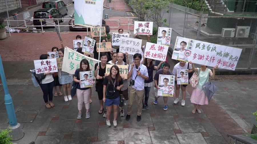 【台灣醒報特約記者陳玨明香港報導】香港立法會選舉爭議仍然未平息!以歷史最高票當選的票王、土地戰士朱凱廸,懷疑因為他的政綱反對「官商鄉黑」勾結,涉及議題或影響惡勢力人士的利益,在當選後收到威脅其家人及本人的生命安全的恐嚇,他向警方舉報後,雖然獲派警員全天候保護,但幕後黑手至今仍未被繩之於法。香港特首梁振英也回應事件,聲言政府不會向惡勢力合作及低頭,並未看見實際行動。