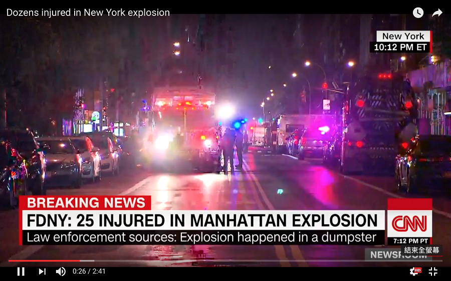 據《路透社》報導,曼哈頓爆炸案發生在當地時間晚上8點30分左右,地點在第6和第7大道之間的23街,爆炸後警方隨即封鎖該區,數百人逃了出來。紐約市市長Bill de Blasio表示,目前沒有跡象顯示這起事件與恐怖主義有關,但當局相信這應是故意行為。