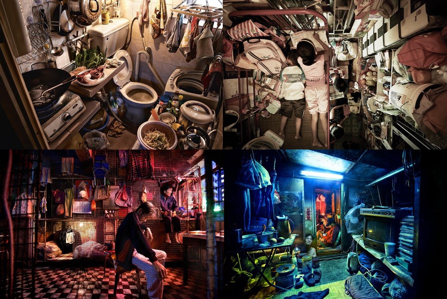 「侷住」相片展中的六個系列,分別是璀璨香港、潮流劏房、兒童樂園、居者有其屋、美食廚房及樂觀面對,包括以以不真實的璀璨色彩投射在籠屋板房內,諷刺香港繁華表象下的另一種現實,也有用俯瞰的鏡頭,讓外界認識這些居住單位愈來愈小也愈來愈貴的「潮流」。