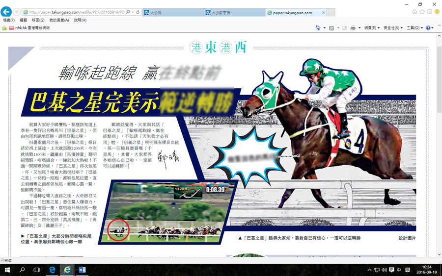 【台灣醒報實習記者李牧權特稿】香港馬壇最近出現了一匹叫「巴基之星」(Pakistan Star)的賽馬,18日在賽場上表現驚人,由原先墊底,一路超越13匹馬而勇奪冠軍,成為媒體報導的焦點,甚至被美化為香港精神。牠在賽場上逆轉反勝的故事,激盪了不少香港人的心。