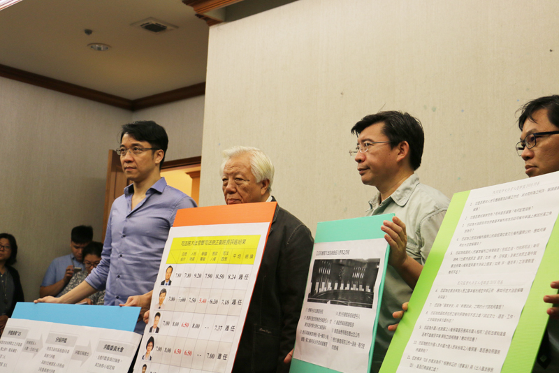 司法院大法官人選一波三折,從前司法院正副院長被提名人謝文定、林錦芳受提名後,就遭到司改會、台灣法學會、台灣人權促進會等民間社團組成的「民間監督大法官人選聯盟」(聯盟)全力反對;到現在的司法院長被提名人許宗力也曾引起社會討論是否違憲,風波近日才逐漸落幕。聯盟12日舉辦「大法官評鑑報告出爐」記者會,公佈民間團體獨立的評鑑結果,終於獲得肯定。