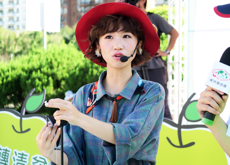 擔任今年度金鐘獎主持人獲得好評的藝人LULU,16日來到國父紀念館中山公園廣場,和現場民眾一起體驗縫傘。(photo by 林亭妤/台灣醒報)