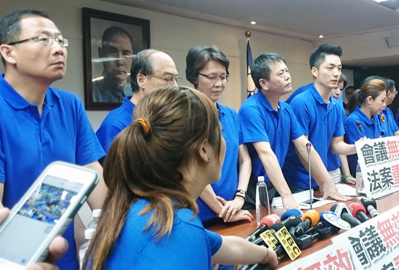 「包括時代力量、親民黨團在內,都一致認定當天初審一例一休草案的會議無效。」立委王育敏、蔣萬安、李彥秀等人在主席台上表示,一定要重新審查草案,國民黨籍立委陳宜民則說,當日會議明明是有異議的,今如果確認議事錄無異議,就是議事人員竄改議事紀錄,是觸犯刑法的行徑,要處1~7年的有期徒刑,或依公務人員瀆職罪移送法辦。