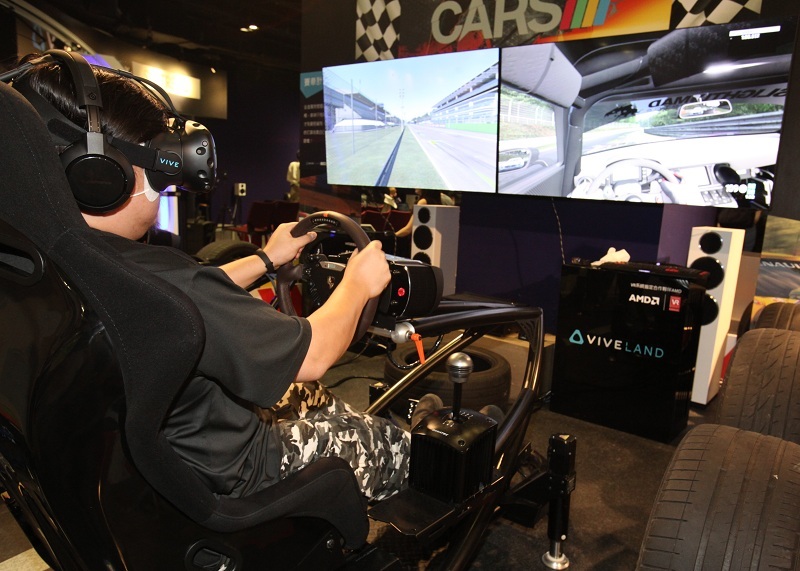【台灣醒報記者盧明正台北報導】「好刺激哦!雖然感覺頭暈,但我好想再玩一次!」一位女記者坐上《Project CARS》模擬賽車體驗座椅、戴上最新科技VR(virtual reality)體驗開賽車的樂趣時表示。HTC(宏達電子公司)於27日在台北三創園區打造全台第一座頂級VIVELAND虛擬實境樂園,希望帶動國內高科技產業的熱潮。