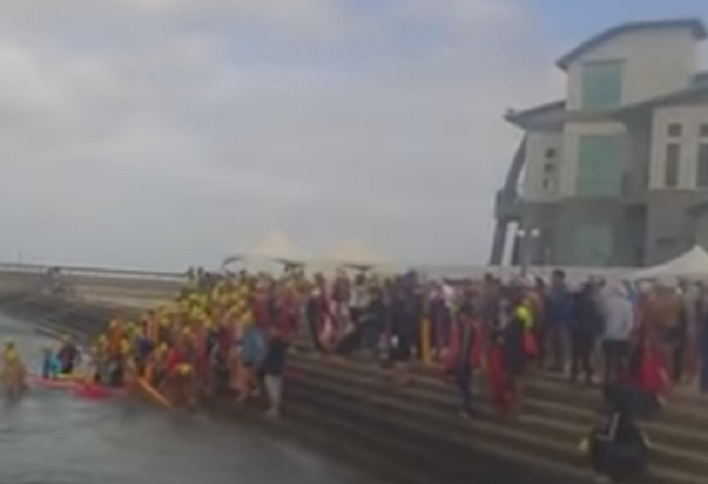 「2016冬暖澎湖、泳出健康」活動30日在馬公觀音亭堤防內舉行,179位泳將不畏風浪低溫下水挑戰。(photo by 網路截圖)