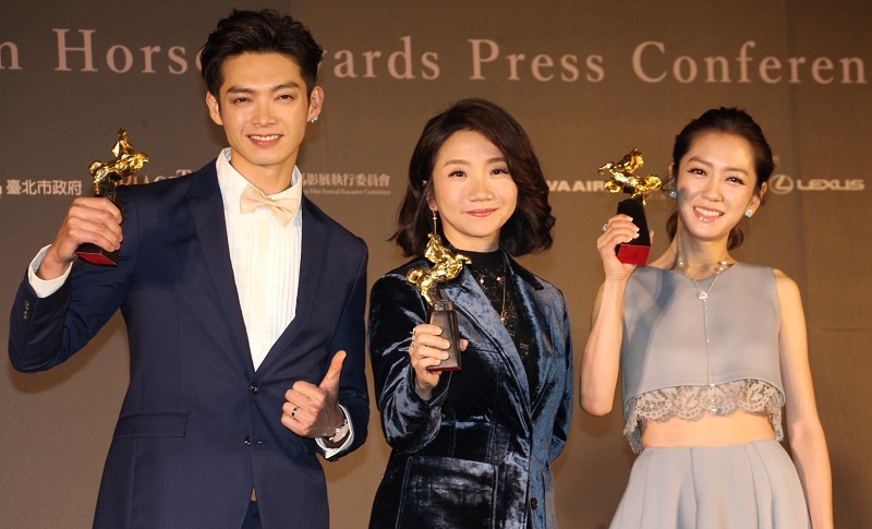 第53屆金馬獎頒獎典禮主持人陶晶瑩(中)和星光大道主持人辰亦儒(左)、楊千霈(右),一起出席31日的造勢記者會。(photo by 盧明正/台灣醒報)