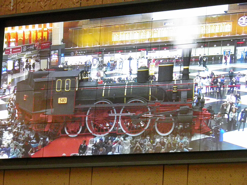 車站內的螢幕呈現火車開進大廳的虛擬實境。(photo by江欣平/台灣醒報)