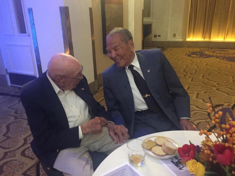 【台灣醒報記者劉屏美國報導】兩位二次大戰時的老兵,美國的退役中校柯爾與中華民國的退役中將陳鴻銓在華府晤面。柯爾高齡101歲,陳鴻銓也98歲了。為感謝中華民國軍民在二戰期間捨身相救之情誼,「杜立德空襲隊」3日由當年擔任杜立德的副駕駛柯爾代表,在華府五月花大飯店向中華民國政府與人民表達最誠摯的謝意。