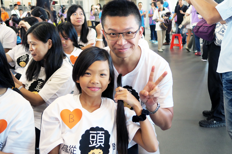 今參與百人捐髮活動的民眾,年紀最小僅4歲;還有2名5歲的發展遲緩孩子以恩、以安,也在父母的執刀下剪下保養了3年多的長髮;更有曾經罹患乳癌的病友淑菁,在治療結束後將重新留長的頭髮捐出來,盼能幫助更多病友度過掉髮時期。