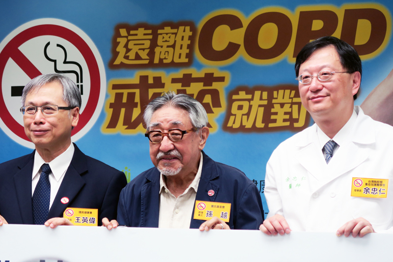 【台灣醒報記者林亭妤台北報導】老菸槍小心!1天一包菸、菸齡20年的民眾,是罹患COPD的高危險群。董氏基金會終生義工爺爺孫越15日講述個人從38年菸齡到罹患COPD種種困擾的經驗,幾乎年年都深受肺部感染折磨。國健署長王英偉呼籲,用戒菸、遠離二手菸、多喝水、練習腹式呼吸等方法來避開肺部疾病,才能維持一定的生活品質。