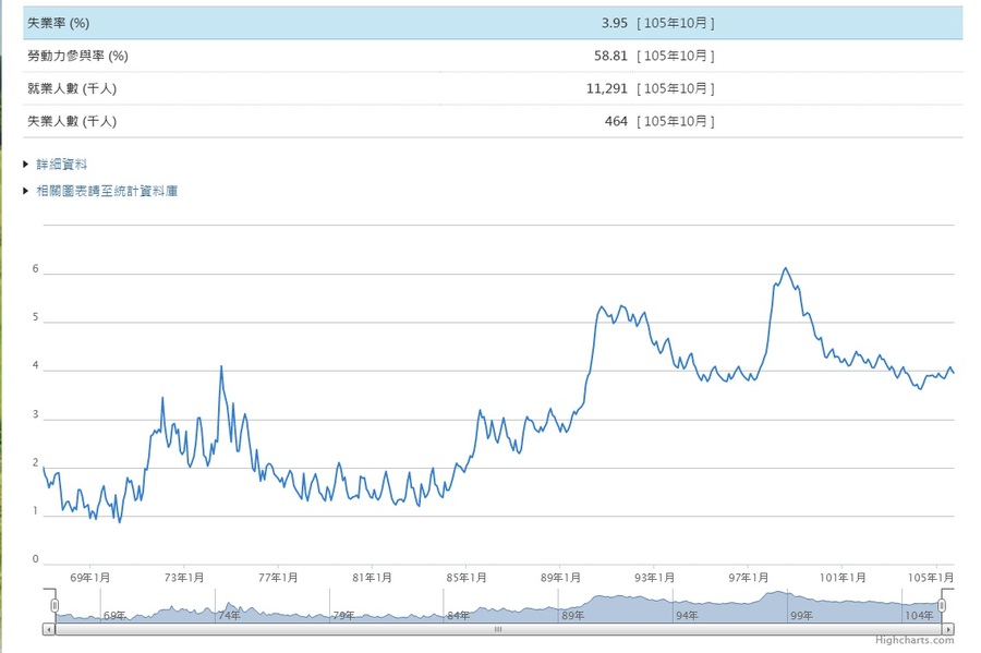 22日行政院主計總處公布調查顯示,今年10月就業人數為1129.1萬人,較9月增加1.5萬人或0.13%;失業人數則是46.4萬人,較9月減少5000人,其中初次尋職失業者減少3000人,因工作場所業務緊縮或歇業者減少1000人,因季節性或臨時性工作結束而失業也減少1000人。