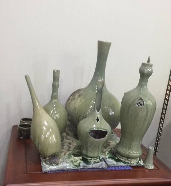 大自然的奧妙與人間工匠技藝結合下的天成絕美,令人驚、令人喜、令人歡呼讚頌。但那滿室的東倒西歪、斷頭壓頸,殘片破身的青瓷,尤其許多作品像連體嬰般,黏貼成塊,在在讓人唏噓與心痛。