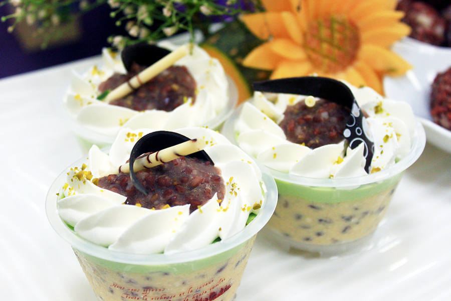 使用花蓮在地食材紅糯米搭配牛奶製成的紅米奶酪,賣相誘人。(photo by 林燕愉/台灣醒報)