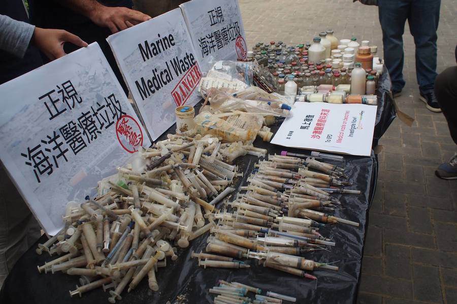 環保團體「創建香港」及「無塑海洋教育」在今年5月,曾至大嶼山海岸收集垃圾,在三白灣找到大批醫療廢料,當中包括載滿疑似血液的試管、生鏽針筒、疑被魚類咬過的藥瓶,由於部份垃圾上印有簡體字,故合理懷疑這些廢料是來自中國大陸。雖然當時團體已向港府反映事件,但有關部門卻未跟進追蹤。