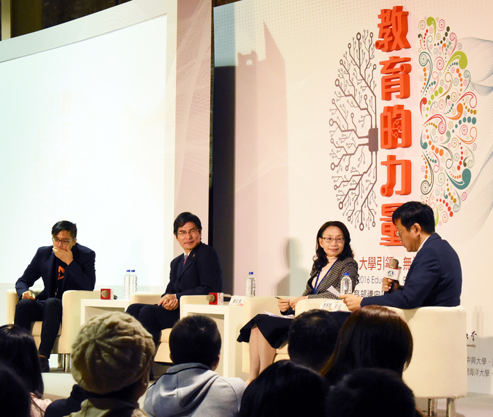 「邁向頂尖大學計畫」系列論壇11日在華山文創園區舉行台北場論壇,邀請台大生化科技系名譽教授潘子明、中正大學前瞻中心主任劉德騏等學者發表計畫成果。「經濟貢獻主題對談」則由台大副校長郭大維主持,請教育部政務次長陳良基、上銀科技總經理蔡惠卿、VM Five創辦人丁俊宏對談。
