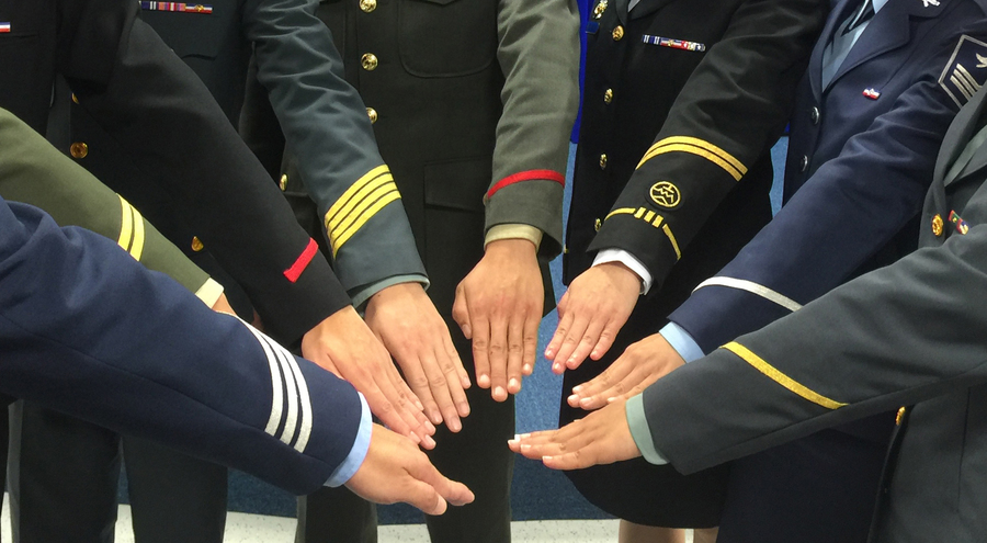 【台灣醒報記者郭恩孝台北報導】國防部13日推出代表通過戰術技能測驗,足堪同袍表率的「榮譽袖帶」,國防部資源司人資處長少將傅政榮指出,為了表彰、認證軍人通過基地鑑測,且表現良好,國防部推出在軍常服左袖加綴長15.2公分、寬1公分,依軍種不同分別為金、銀、紅三色的榮譽袖帶,藉此提升軍人榮譽感。