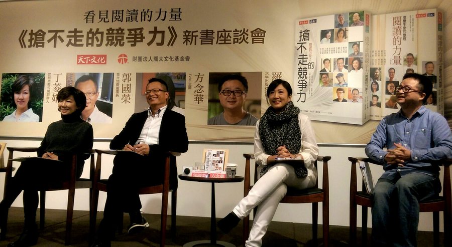天下文化出版與喬大文化基金會18日攜手舉辦「搶不走的競爭力」新書座談會,宣傳《閲讀的力量2—搶不走的競爭力》一書,並邀請了書中4位訪談者,即TVBS主播方念華、世紀奧美公關創辦人丁菱娟、喬大地產董事長郭國榮與羅文嘉等嘉賓,從不同的領域到會上與讀者們分享閱讀中的力量與啟示。