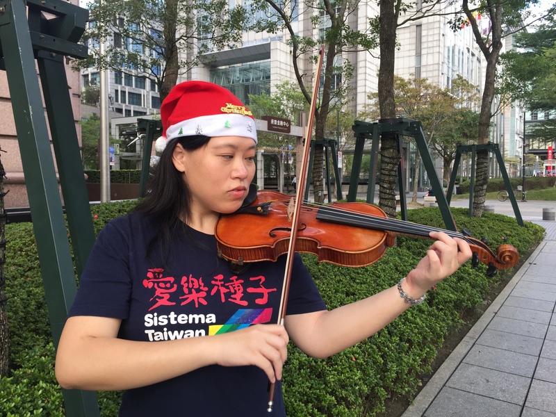 「ST愛樂種子計畫」沙崙國小分部老師郭孟捷認真的演奏小提琴。(photo by郭恩孝/台灣醒報)