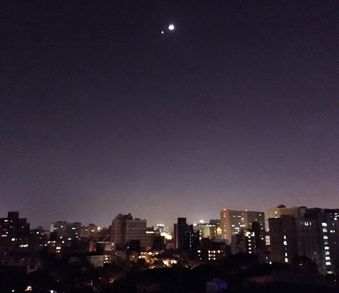 因應近日天象晴朗,氣象主播鄭明典在臉書上表示,民眾可看到「金星伴月」的現象。從照片中看來,「金星伴月」說的是金星出現在月亮的七點鐘方向,就像點在美人嘴角的一顆痣。李孟軒指出,這只是一種美景趣象,對天氣並沒有太大的影響。