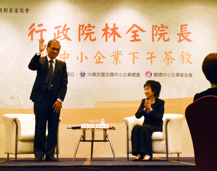 林全院長11日與70多位中小企業代表進行茶敘,此次活動是由中華民國全國中小企業總會及關懷中小企業基金會主辦,企業代表共準備了30個提案要向林全內閣建言。林慧瑛致詞時表示,「希望透過此次面對面的懇談,能夠就企業的經營問題及相關事項來交流討論。」