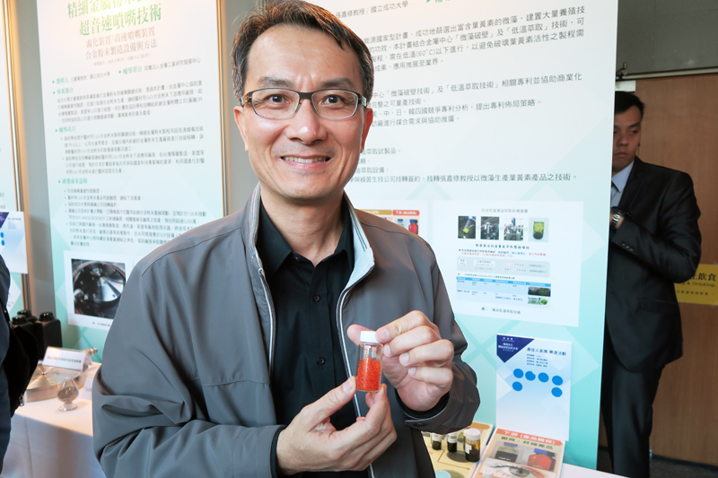 【台灣醒報記者林亭妤台北報導】市售葉黃素產品成分主要由金盞花萃取,今成大化工系教授張嘉修成功找到葉黃素含量更豐富的微藻,且其結構比金盞花更能為人體吸收!金屬中心博士楊勝仲17日說,透過科技部產學合作計畫,再提供「低溫萃取藻油」等技術,能穩定量產產藻油、應用於新創的葉黃素產品,期盼日後可在美、中、日、韓完成專利佈局。