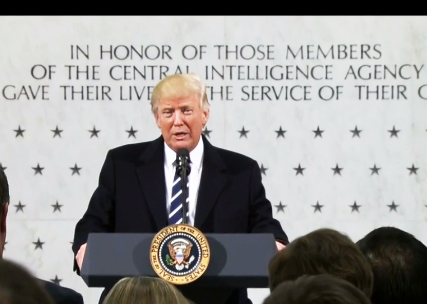 據美國《CNN》報導,川普看到紀念犧牲探員的榮譽牆時僅說,「這是非常特別的一面牆。」隨後他在牆前對著約300位中情局員工發表談話,「這是我正式到訪的第一站,沒有人比川普我更深信,整個情報界和中情局都非常勇敢傑出。」他也說,「我一直在你們背後支持你們,但我知道,有時候你們可能並沒有得到想要的支持。」