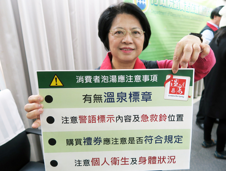 【台灣醒報記者林亭妤台北報導】考量民眾天冷時想泡湯放鬆,行政院消保處日前抽檢24家溫泉會所的衛生管理、設施安全等條件,不合格家數18家,其中禮券契約不合格業者高達10家。消保官王德明23日表示,地方政府需加強溫泉場所的管理,消保官張英美則提醒,民眾前往溫泉會所泡湯,一定要注意業者是否有溫泉標章的認證。