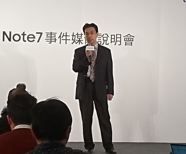 【台灣醒報實習記者陳以庭台北報導】Galaxy Note7電池設計不良造成爆炸,竟導致三星市值總額一度下降到207萬億韓元!為挽回消費者信任,三星總公司於23日上午召開全球說明會,證實自燃起因於電池設計與製造的不周。台灣三星電子行動資訊事業部副總經理李元榮表示,未來手機上市前將對電池實施八項檢測,以保障消費者使用安全。
