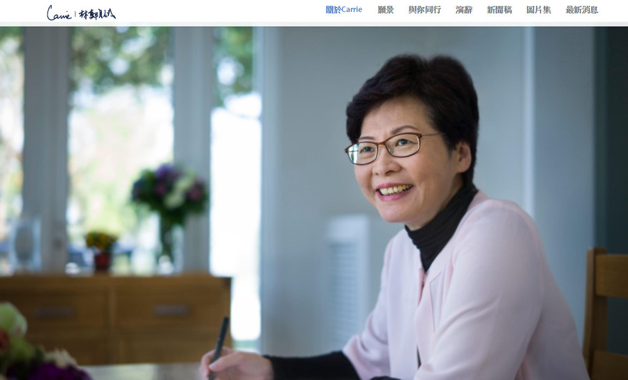 林鄭月娥的競選網站「carrielam2017.hk」,25日正式啟動,網站除了林鄭月娥的自我介紹及治港8大願景外,更以軟銷方式包裝她的形象,除有網誌分享自己辭任政務司司長的心情,網站特別設有圖片集,罕有公開她多張與丈夫及兒子的合照,以及自己年輕時的相片。