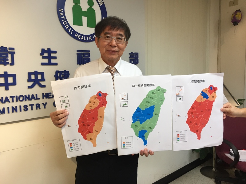 過年期間返鄉人潮眾多,考量全國民眾就醫無慮,健保署25日上午召開「院所查詢真方便,民眾安心過好年」記者會,彙整全國特約醫療院所在春節期間每日看診時段。李伯璋指出,春節期間,全國各縣市依然有約300家特約醫療院所每日提供服務,除夕當天全國醫院開診超過6成、初一及初二期間約2成、初三、初四至5成,初五開始有近8成醫院恢復看診。