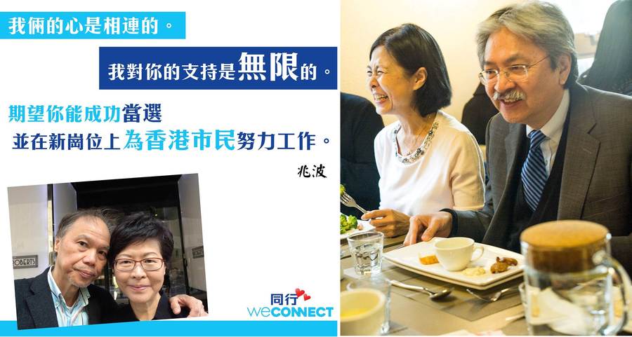 【台灣醒報特約記者陳玨明香港報導】情人節除了是一般情侶表達愛意的日子,當香港特首選戰白熱化之際,這天也成了熱門參選人大鬥法爭取支持的機會。兩大特首熱門參選人,前政務司司長林鄭月娥與前財政司司長曾俊華,便在情人節前後,利用自己配偶的情人節打起公關戰,結果是曾俊華再贏一仗。