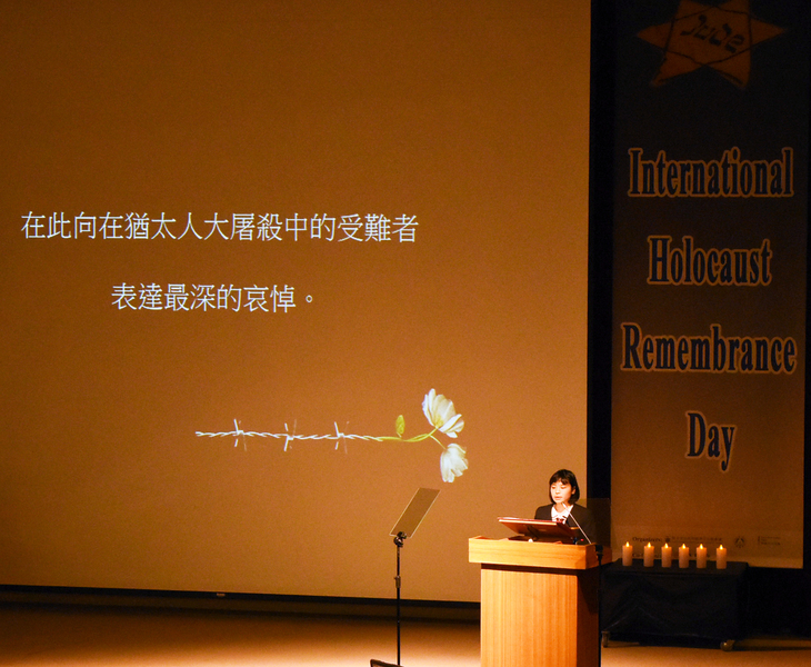 「2017國際大屠殺紀念日」19日於國家圖書館舉辦紀念典禮,由駐台北以色列經濟文化辦事處、德國在台協會、教育部及國家圖書館共同承辦,新竹光復高中139位學生也受以色列代表邀請,出席觀禮並由學生代表致詞,現場逾5百人出席。