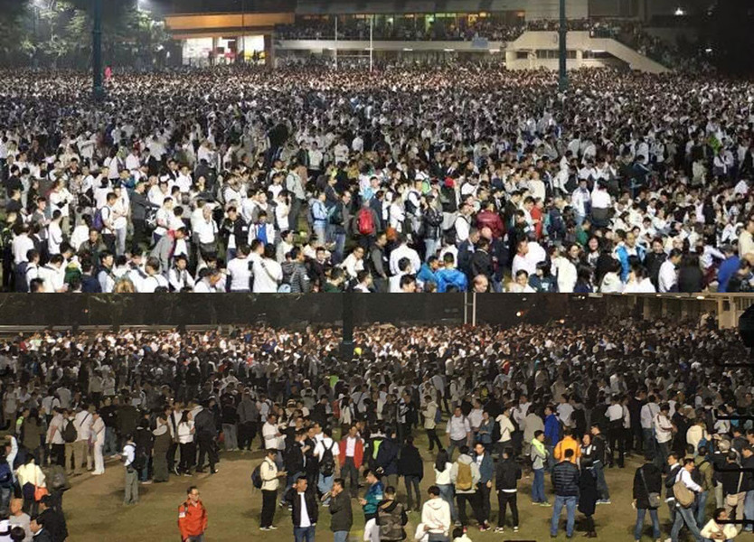 不少參加者都身穿白衣,聲言是象徵「正大光明」。香港崇基神學院院長邢福增在社交網站留言,說:「穿上白衣,也無法改變黑暗的事實,這是黑暗的一夜。」事實上,有參與集會的警察以二次大戰時猶太人被迫害來比喻現時警察的工作,另有人帶領在場數萬人,一同喊叫粗言穢語口號,並要求設立辱警罪,保障警務人員執法。