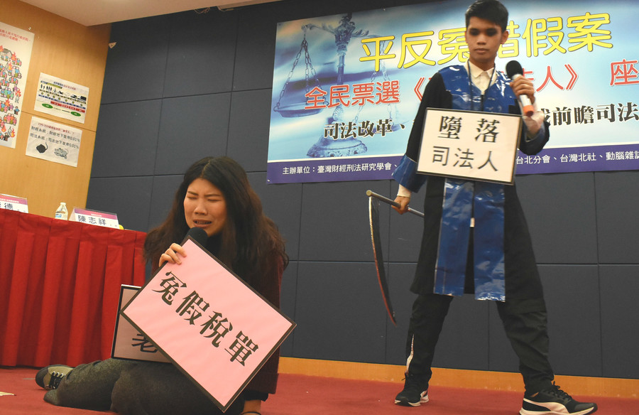 在台大法律學院任教30多年的陳志龍說,司法人可以分為三種:一、墮落司法人:反人權、反法治的典型,也就是法西斯式的劊子手角色;二、保守司法人:亦步亦趨跟隨上級訂定的標準、墨守成規的司法人;三、前瞻司法人:判決具有愛心、前瞻性、釋放法治正面能量的司法人。財經刑法研究學會及法稅改革聯盟也帶來行動劇,演出三種法官的差別,讓許多在場法官直呼「令人感慨」。