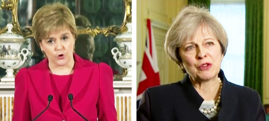 據英國《衛報》報導,施特金批評梅伊罔顧蘇格蘭人民續留歐盟的意願,指英國計畫於14日啟動《里斯本條約》第50條的脫歐程序,卻未事先告知蘇格蘭政府。她憤慨地說,「英國政府絲毫沒有願意妥協、取得共識的態勢。」過去以來蘇格蘭不斷讓步,卻只換得一道冷硬高牆(a brick wall of intransigence)的回應。