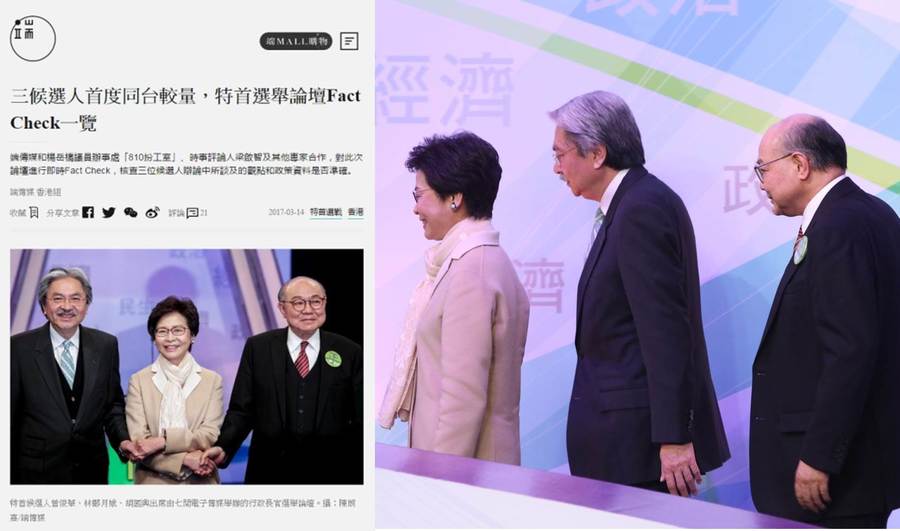 【台灣醒報特約記者陳玨明香港報導】世界各地的選舉,候選人為爭取支持都會侃侃而談,但當中卻不一定有事實根據,特別是現今進入「後真相」(post-truth)年代,大眾會盲信煽動言論。有特首候選人就因為被發現其言論有極多失實,多個香港傳媒因而在特首選舉論壇中,也開始引入「實時查證(fact check)」,務求讓公眾第一時間知悉事實真相。